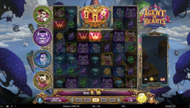 Каталог компании Play’n Go стремительно расширяется, и на этот раз вниманию посетителей предлагается увлекательный игровой автомат Agent of Hearts. Виртуальный симулятор на сказочную тематику в режиме онлайн отправит в удивительный мир волшебства. Главные герои здесь — вымышленные известные персонажи, которые подскажут, где спрятаны сокровища. Настал момент включить игровой автомат Agent of Hearts и разбогатеть.