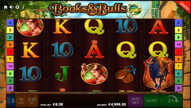 Игровой автомат Books and Bulls Double Rush от производителя Gamomat уже успел завоевать внимание многих посетителей, а все благодаря интересной тематике, качественному оформлению дисплея и его щедрости. Включив симулятор, пользователь отправится в Италию, где примет участие в ежегодных забегах бычков, опасности будут преследовать, но это только придаст азарта и адреналина. Кто уже успел поиграть на реальные деньги в аппарат, получил свое вознаграждение и остался довольным, суммы выплат не ограничены. А если пока нет уверенности в том, что здесь есть шанс заработать, поиграйте бесплатно в гаминатор, активировав демо версию без смс и без регистрации. Так каждый гэмблер протестирует игровой автомат Books and Bulls Double Rush и лично убедиться в его щедрости, монеты потекут рекой.