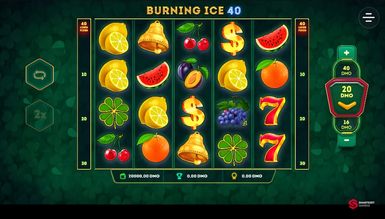 Игровой автомат Burning Ice 40 создан компанией Smartsoft. В аппарате используется сетка с пятью барабанами и четырьмя рядами, и в нем есть 40 способов составить комбинацию. Бонусы симулятора включают в себя Вайлды, сложенные джокеры, респины и выигрыши по разбросу. Симулятор представляет собой игру на фруктовую тематику с добавлением традиционных колокольчиков, красных семерок и четырехлистного клевера на удачу.