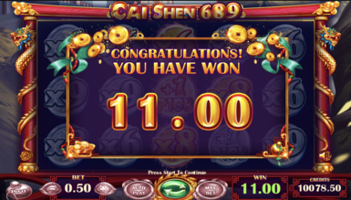 Слот Cai Shen 689 оснащен пятью катушками с десятью полосами. На каждую линию слот-машины принимается ставка от десять до 70 кредитов за спин. Чем крупнее сумма на кону, тем больше можно получить выплаты, главное собрать на соседних барабанах одинаковые знаки. Бонусный раунд в не предусмотрен.