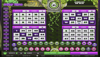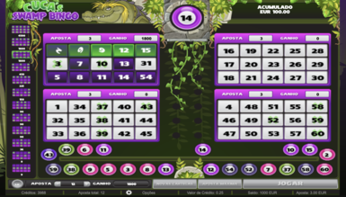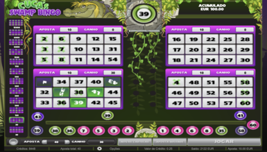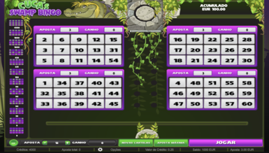 На каждом билете случайным способом выбрано 15 чисел от 1 до 60. Игрок может проставить на каждом из них до 12-х сумм, соответствующих определенным призовым комбинациям. При каждом запуске игрового автомата Cuca's Swamp на трек внизу экрана выпадает 30 шаров. Совпавшие цифры отмечаются на картах и оплачиваются согласно схеме выплат, которая размещена в левой части экрана и насчитывает 12 возможных вариантов. Максимальный выигрыш в казино Slots City дает полностью закрытый билет х1500.
