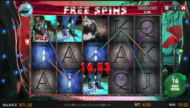 Зомби-Джок — Дикий игрового автомата Мертвые Удары онлайн, заменяющий любой стандартный. Знаки фриспинов — это символы разброса, запускающие бонусные игры.