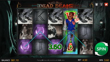 Демо слот Dead Beats воспроизводится через макет с пятью барабанами и тремя рядами. Существует до 30 регулируемых линий выплат, которые определяют призовые комбинации. Выбрать размер ставки предлагается от 0,01 до 37,50 монеты на спин. Во время игры на катушках появляются девять обычных символов. Здесь все выигрыши выплачиваются слева направо, кроме Разброса. Цепочки умножаются на монеты, поставленные на линию, а Скаттер умножает общую ставку. Здесь значки делятся на категории с низкой, средней и высокой оплатой. Таблица выигрышей: