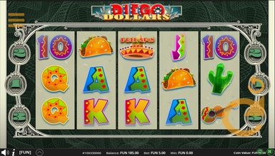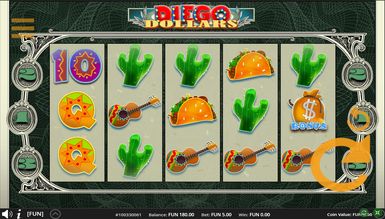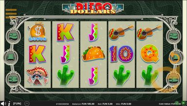 Играйте бесплатно в слот Diego Dollars, чтобы ознакомиться с его характеристиками в лучших казино Украины. Вам предложено 5 барабанов. Призовых линий в гаминаторе нет. Вместо них предложено 243 метода формирования выигрышных комбинаций. Для ставок доступна 1 монета номиналом 0,1 — 5 долларов.