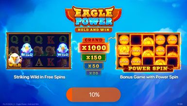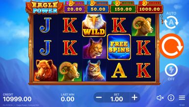 Slots City казино предлагает своим гостям бесплатно в тестовом режиме изучать Слот Eagle Power Hold and Win или создать аккаунт и поиграть на реальные деньги. Первый вариант станет для участника хорошей тренировкой без вложений средств, а второй — источником настоящей прибыли. Независимо от выбора режима игры необходимо изучить технический ряд аппарата: