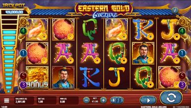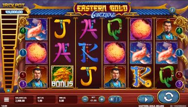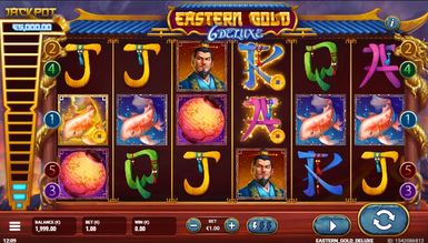 Игровой автомат Eastern Gold Deluxe от компании Gamevy был создан не так давно, но уже успел завоевать внимание геймеров, а все благодаря интересной тематике и качественному оформлению интерфейса. Аппарат вмиг перенесет посетителя во времена правления великих китайских воинов, которые готовы на все ради власти и прибыли. Играя на реальные деньги в симулятор, у каждого гэмблера будет шанс получить выигрыш, собрав ценную комбинацию из знаков. Но если сомневаетесь и не готовы делать настоящую ставку, играйте бесплатно в гаминатор, активировав демо версию без смс и без регистрации. Так протестируете игровой автомат Eastern Gold Deluxe и наберетесь опыта, но на выплаты в этом случае не рассчитывайте.