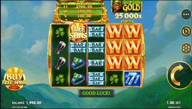 В слоте Emerald Gold предусмотрено пять катушек с 40 фиксированными линиями, которые расположены на фоне голубого неба и горных хребтов. В слот-машине допускается ставка от двух до 10 кредитов за вращение. Игровой автомат Emerald Gold оснащен бонусным раундом, который включится после того, как на барабанах выпадет от двух до четырех символов со шляпой. Поиграть с мобильного в игру тоже можно, нужно лишь скачать на телефон его и наслаждаться отличным отдыхом в любом месте.
