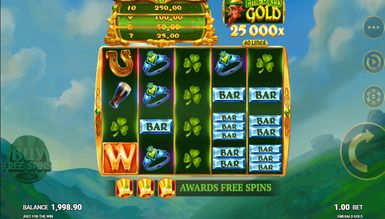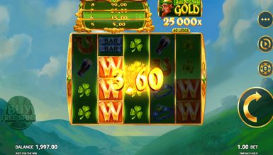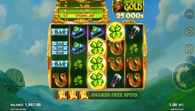 Знак с изображением листа клевера является Скаттером. Skatter активирует фриспины, выпав на барабанах от четырех штук одновременно. А если на полосах слот-автомата выпадет сразу 12 таких картинок, геймера казино Слотс Сити ждет вознаграждение в размере 25000 жетонов.
