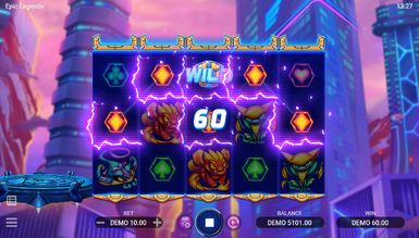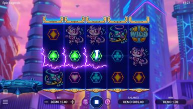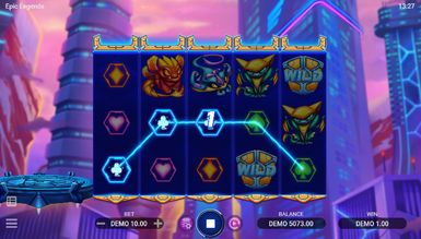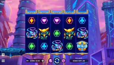 Футуристический тематический демо слот Epic Legends, играемый на наборе 5x3, генерирует 20 способов ставок с выплатой слева направо. В игре есть Вайлд рядом со Скаттер-шаром, который перемещается по барабанам. Также предусмотрено четыре различных варианта фри-спинов. Во время бесплатных запусков могут применяться множители, а Wild доступны к расширению или залипанию. В процессе существует девять платных символов, включая Дикий, который делит высшую ценность с Purple Alien. Размеры ставок варьируются от 0,10 до 300 монет. Таблица выплат выглядит следующим образом:
