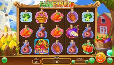 Игровой автомат Farm Family создан Dragoon Soft. В нем пять барабанов, 3 ряда и 25 линий выплат. Действие игры разворачивается в виде книжки с картинками на ранчо без людей, но с большим количеством продуктов. В аппарате есть Джокеры, Разбросы, множители и бесплатные вращения. Это незамысловатая игра от динамичного азиатского стартапа Dragoon Soft. Визуализация фермерства имеет все ожидаемые образы архетипического ранчо, очень похожие на сеттинг слота Fat Rabbit от Push Gaming, но без такого выдающегося центрального персонажа.