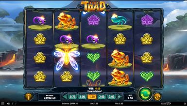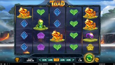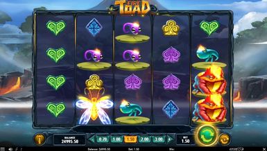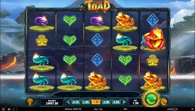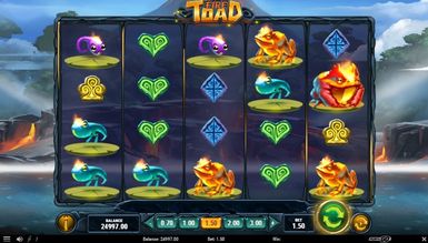 На экране игрового автомата Fire Toad появится огромная огненная жаба. Эта картинка наделена наибольшими показателями. Она умножит вложения участника в 0.15раз.