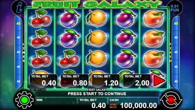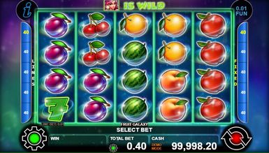 В нижней части экрана слота Fruit Galaxy расположена панель управления. С помощью специальных клавиш гость Космолот онлайн в Украине выберет число задействованных полос, на каждую из них оформит ставки и нажатием на круговые стрелки запустит движение катушек.