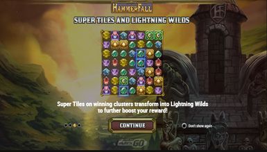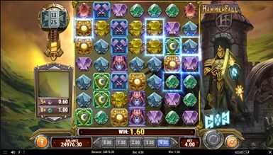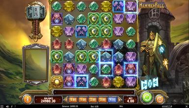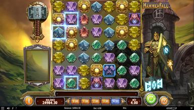 В мае 2021 года известный провайдер софта Play’n GO выпустил игровой автомат Hammerfall. Тематика эмулятора — средневековье. В азартной игре используются кластерные выплаты за комбинации картинок, а на самих символах изображены камни, рунические знаки, предметы рыцарской экипировки и прочие сюжетные атрибуты. В аппарате довольно качественная графика, при этом он хорошо функционирует на смартфонах, даже бюджетных с невысоким уровнем производительности. У игроков есть возможность поиграть на реальные деньги в сертифицированный игровой автомат Hammerfall.
