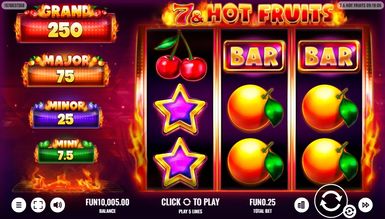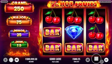 В казино Космолот онлайн в Украине вы сможете найти множество эмуляторов, похожих на слот Hot Fruits в контексте геймплея. Он здесь действительно ничем особым не выделяется. В начале игровой сессии посетитель клуба делает ставку, а затем вращает барабаны и дожидается выплат. Они, к слову, начисляются за комбинации из трех символов, но только одинаковых. Умножать награды, к сожалению, нельзя. Зато у игроков есть возможность сорвать один из четырех типов джекпота: Mini, Minor, Major, Grand.