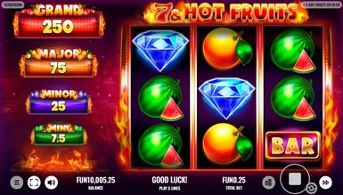 В игровой автомат Горячие Фрукты можно поиграть бесплатно без регистрации в игральном зале. Для этого понадобится запустить демоверсию. Ее отличие от обычной состоит в том, что клиенту выдаются демомонеты. Виртуальная валюта, по сути, бесконечная, ведь для ее восполнения достаточно перезагрузить страницу и начать вести игру заново. Прогресс при этом не сохраняется, так что будьте внимательны.