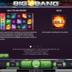 Главной изюминкой автомата Big Bang является прогрессирующая система мультипликаторов, состоящая из 6 уровней. Каждая выигрышная комбинацию будет увеличивать текущий мультипликатор на 1 пункт (х1, х2, х4, х8, х16 и х32). Но также спин без комбинаций будет сбрасывать индикатор до х1. Важно знать, что любое изменение ставки автоматически сбросит мультипликатор до базового. Необычная опция дает игрокам невероятные возможности, и именно через систему мультипликаторов раскрывается огромный потенциал слота. Даже сложно представить, что ваш обычный выигрыш умножается в 16 или даже в 32 раза!