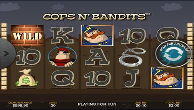 Cops n` Bandits прекрасно подойдет тем людям, которые хотят приятно провести время за игровым автоматом. Непревзойденная графика и захватывающий сюжет, подарят море удовольствия от процесса игры, и навсегда зачислят Вас в ряды любителей этого аппарата. Все говорит о том, что любители детективных сюжетов теперь имеют альтернативу игровому автомату Resident, который привлек огромную аудиторию фанатов данной тематики. Его функциональные особенности могут говорить только о том, что долгие годы усердных трудов производителей игровых автоматов прошли не зря, ведь они привели к созданию Cops n` Bandits, слота, который максимально соответствует требованиям современных геймеров. Этот игровой аппарат считается довольно щедрым, а потому, помимо приятно проведенного времени, Вы сможете неплохо заработать. Желаем Вам приятного отдыха вместе с Cops n` Bandits и больших выигрышей.