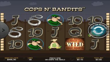 Процесс игры на Cops n` Bandits, довольно простой, и освоить его легко сможет даже новичок, а все игровые моменты, на практике вполне доступны. Cops n` Bandits, предлагает вниманию геймеров увлекательную бонус игру, которая представлена в виде опознания бандитов. Если Вы сделали правильный выбор злодея, получаете выигрыш, а если нет, считываются бонусы. Реалистичность картинки добавляет особой остроты в процесс, и не оставляет шансов плохому настроению.