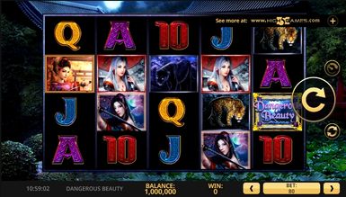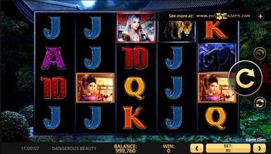 По поводу оформления следует отметить, что оно заслуживает особого внимания. Игра выполнена в 3D-графике, с оригинальными звуковыми эффектами. Также присутствует качественная анимация, что делает игру более реалистичной. Важно также и то, что в отдельных моментах по оформлению игрового автомата Dangerous Beauty присутствуют элементы восточной культуры, и вообще ее отдельные аспекты здесь особенно наблюдаются. Изображения домов в восточном стиле на заднем фоне игры, внешность главных героинь слота (очаровательных воительниц), которым присущи черты дивного Востока, - все это погружает игрока в мир таинственной, манящей и при этом весьма опасной красоты. К тому же, изображения, которые игрок увидит на барабанах слота, также обыгрывают представленную здесь тематику: тигры, пантеры и т.д. Цветовая гамма игрового автомата Dangerous Beauty не выбирается из общей темы. Здесь присутствует смешение синего, фиолетового и зеленого тонов. Оригинальной чертой данной игры является отсутствие каких-либо усложненных техник прохождения заданий, лишних изображений, перегружающих внимание пользователя. Только Восток, прекрасные девы, отлично знающие, что такое меч и достойные звуковые эффекты наряду с неплохой графикой.