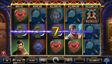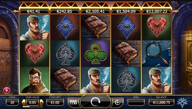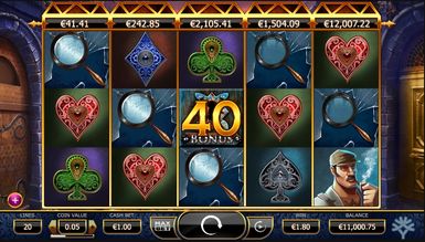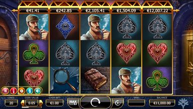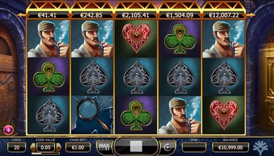 Автомат Холмс и украденные камни - это пятибарабанный слот с 20-ю активными по умолчанию линиями. Каждая линия принимает один жетон. Поэтому установка ставки заключается в выборе номинала монет - диапазон 0.01 - 2.00. Широкий разброс позволяет играть на автомате пользователям с разными финансовыми претензиями6 кто-то поставит на игру минимум, а кто-то решится на максимум в 40 кредитов.