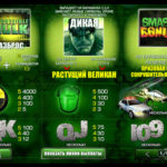 Говоря о слоте The incredible hulk, нельзя не отметить непревзойденное качество графики, которое как всегда предлагает своим пользователям компания Плейтех. Программисты с легкостью справились со сложным заданием, сделать игру максимально реалистичной и приближенной к ее кинематографической версии. Благодаря им у игрока, который сидит за слотом, есть ощущения непосредственного участия в погонях от полицейских и крушении машин. Если заинтриговала возможность испытать на себе роль героя фильма Халк, предлагаем Вам, отправится вместе с нами на освоение аппарата.