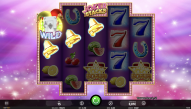 В соответствии с названием игрового автомата Joker Stacks балом в этой игре правит Джокер. Рядовые элементы формируют призовые сочетания по вполне обычной схеме — когда 3 или больше одинаковых картинки займут позиции в соответствии с игровой линией, каждая из которых начинается строго в крайнем левом столбце. Призовые элементы должны находиться на смежных барабанах, пробелы не допускаются. Оплата выигрышей производится по формуле, которая применяется практически во всех игровых автоматах — линейная ставка умножается на коэффициент, присвоенный выпавшим элементам в таблице выплат.