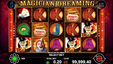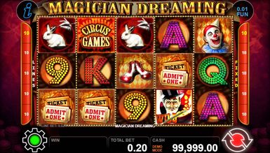 Magician Dreaming это волшебный игровой слот, тематика которого основана на посещении виртуального цирка, где трудятся умелые фокусники, веселые клоуны и другие представители развлекательной сферы. Слот будет интересен пользователям игрового автомата Magic Wand и других аппаратов посвященных фокусникам. Помимо увлекательной тематики эмулятор наделен различными бонусными функциями, которые помогут получить заслуженные призы. Быстрый и довольно крупный выигрыш получит игрок, если будет продуманно делать ставки и вращать барабаны, а самое главное, что полагается за игру это потрясающее настроение.