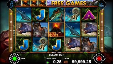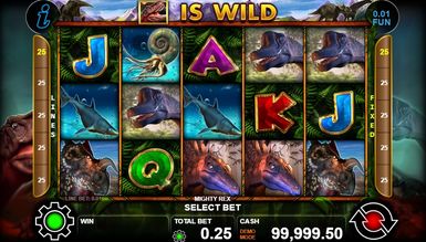 В игровом автомате Mighty Rex каждый может познакомиться с удивительной эпохой динозавров, где вам сулят огромные вознаграждения. Ведь игровой автомат наделен прекрасной графикой и отличной прибыльностью, ведь символы дают значительные умножения. Например, символ динозавра Рекса предлагает получить отличные выигрыши, а вот скаттер Вулкан подарит большое количество фри-спинов, которые можно увеличить до 100 запусков. Вы станете очень богатыми благодаря слот-машине Mighty Rex.