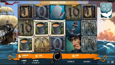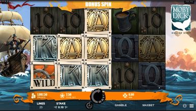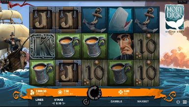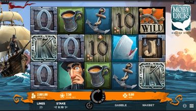 Игровой автомат Moby Dick обладает 5 стандартными барабанами и 25 активными постоянно линиями для ставок. Ставку можно сделать при помощи панели Stake кнопками вправо-влево от 0,01 до 2,00 монет. Соответственно, общая ставка Total Bet варьируется в пределах 0,25-50,00 монет. На панели управления, кроме того, имеется: табло Credits с числом, показывающем количество монет в активе; табло Win, демонстрирующее размер выигрыша в случае удачи; кнопка Gamble, запускающая игру на удвоение; кнопки, активирующие вращение барабанов - Maxbet - с максимальной ставкой, А - игру в автоматическом режиме и круглая кнопка со стрелкой - игру в обычном режиме. Таблица выплат, в которой можно почерпнуть информацию об условиях игры и значениях коэффициентов, открывается кнопкой i.