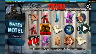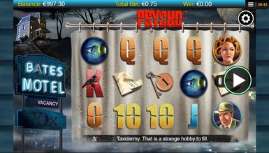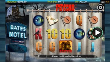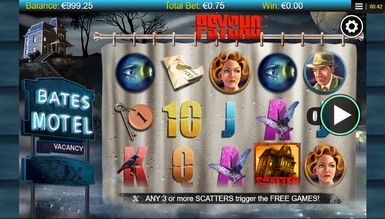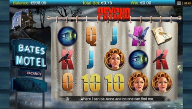 По сюжету киноленты центром всех событий стал придорожный мотель, где он находиться, укажет его вывеска, что светится неоновыми огнями с правой стороны экрана. Пустынная улица покрыта мраком, и только тусклый свет фонарей освещает силуэты домов, которые неспешно обволакивает туман. В левом верхнем углу становится заметным мотель, с одинокой фигурой на крыльце. Черные деревья в свете огромной луны кажутся еще более зловещими. Игровая площадка, что состоит из пяти барабанов и 25 призовых линий, имеет стилистическое оформление, что соответствует выбранному сюжету. Символы располагаются на шторке, что висит в ванной комнате. Именно здесь совершал убийства маньяк. Напряженную атмосферу поддерживают дополнительные спецэффекты, а именно вспышки молний, капли дождя, потоки крови после удара ножом. Дополняет общую картинку музыкальное наполнение виртуального слота, что взято непосредственно из фильма и держит нервы игрока на пределе на протяжении всей видеоигры.