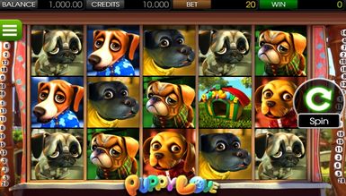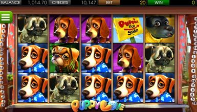 Игровой слот состоит из пяти барабанов и 20-ти призовых линий по три ряда символов. Интерфейс слота оформлен с использованием ярких цветов, а вращение барабанов сопровождается стильной музыкой. Каждая выигрышная комбинация активирует небольшой анимационный отрывок из жизни того или иного щенка. Одним словом, играть в Puppy Love - сплошное удовольствие! Кроме того, вас ждут невероятные бонусы, которые расширяют ваши возможности в игре для получения заветного денежного приза. К вашим услугам разбросанный, бонусный и дикий символ с дополнительными функциями, бесплатные прокруты барабана и тематическая бонусная игра. Теоритически данный слот имеет процент отдачи в 95,3. Выплаты вы будете получать по стандартным призовым комбинациям, состоящим из трех, четырех и пяти одинаковых картинок на одной активной линии. Играть можно в диапазоне от пяти до 100 кредитов по каждой линии. Увеличивая ставку по линии в начале игры, вы значительно повышаете коэффициент ваших выплат за комбинацию из игровых символов. Максимальной выплатой является сумма в 10000 кредитов, которую вы можете получить при условии игры на самых высоких ставках. Ниже мы предлагаем вам более подробное описание всех символов игры и их назначений.