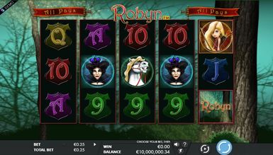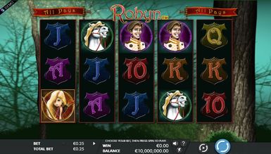 Робин Гуд раздавал добытые богатства нуждающимся людям. Робин из сюжета автомата Robyn раздает свои богатства удачливым и настойчивым игрокам.