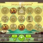 После клика на стартовую клавишу тематические символы Secret of Nefertiti начинает сменять друг друга, периодически выстраивая призовые комбинации. Они формируются слева направо, стартуя с крайнего левого барабана. В игре присутствует специальная символика. Вайлд - мумия - оснащен соответствующей надписью на английском языке: символ возникает на центральном игровом барабане. Wild выполняет основную функцию, заменяя рядовые картинки и одновременно являясь диким множителем: в составе комбинации дикий символ умножает призы в 2, 3, 5 раз, что неимоверно выгодно. В качестве символа разброса Secret of Nefertiti используется изображение золотой маски. Маска появляется на средних барабанах игрового автомата, принося впечатляющие множители к сумме общей ставки. Если произвольным образом на позициях игрового поля возникает 3-5 скаттеров, пользователь запускает бесплатные вращения, самостоятельно определяя их количество и опции вайлда. Пользователь, желающий получить дикий символ с коэффициентом х5, выбирает совершение 5 фриспинов. 10 Бесплатных вращений предназначается игроку, предпочитающему мультиплеер х3. Максимальное количество спинов, достигающее 15, присуждается пользователю, согласившемуся на значение мультиплеера х2.