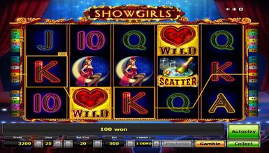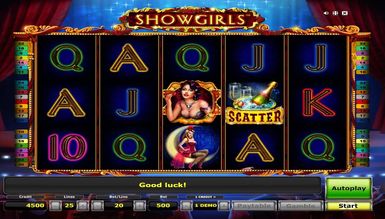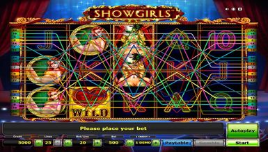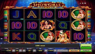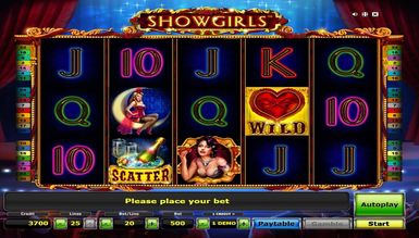 Игровой эмулятор Showgirls состоит из пяти барабанов с 25-ю линиями выплат, на которых тремя рядами размещаются 11 игровых символов. Согласно заявленной тематике игры в оформлении слота используются самые яркие цвета. Вращение барабанов будет сопровождаться характерной стилизованной музыкой. Главный экран иллюстрирует затемненную сцену с тяжелым занавесом, на котором и происходит все веселье. Здесь вы увидите четырех прелестных танцовщиц, символы игральных карт A, K, Q, J, 10 и другие картинки, которые принесут вам настоящие выигрыши. Выплата начисляется за комбинацию из трех и более одинаковых символов на той линии слева направо (за исключением тех, что были образованы с помощью символа разброса, то есть в любом месте на экране). Сумма выплаты будет зависеть от самой картинки, ее числа и, конечно же, от суммы вашей начальной ставки. В ваши шансы приобрести такую комбинацию повысятся, если активных (то есть участвующих в игре) линий будет как можно больше. Также вам предоставляется право на бесплатные спины, которые вы можете выиграть при помощи символа разброса, и риск игру, позволяющую удвоить ваши выигранные средства.