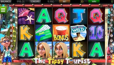 Слот отличается достаточно широким выбором бонусных опций, которые позволят заработать большие призы. Но главное на автомате можно играть бесплатно, совершая ставки в виртуальных кредитах и получая награды. Например, в The Tipsy Tourist имеется дикий символ, который представлен указательным знаком. Данный символ весьма прибыльный, поскольку способен подменять любой символ в игре, но вот не подействует он на символ Красной Чашки и Пляжного Мяча. А так же в слоте есть скаттер-символ, который представлен в виде Пляжного Мяча, он приносит каждому игроку приятный подарок. Вас ждет 8 бесплатных вращений барабана, если три скаттера покажутся на барабанах под номерами 3, 4 и 5, причем активность линий не имеет значения. Во время фри-спинов дикий символ, кроме своих функций, приобретает и дополнительные опции, так он может оставаться на выпавших ячейках до конца фри-спинов, тем самым значительно повышая вероятность выигрыша в игре.