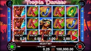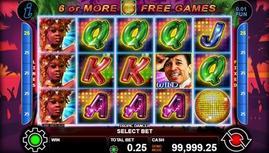 Игровой автомат Tropic dancer — хорошая возможность окунуться в атмосферу зажигательных танцев и больших выигрышей. Качественная и яркая графика создает атмосферу диско, а веселая музыка мгновенно поднимает настроение.