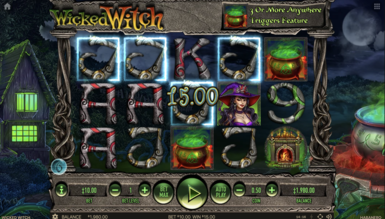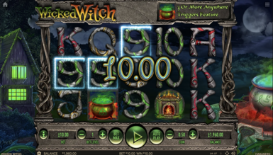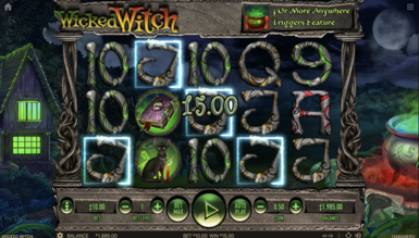 Развлекательный процесс, проходящий в слоте Wicked Witch, подразумевает весьма стандартные правила. Комбинации, приносящие выигрыши, будут выстраиваться слева направо и включать в свой состав от 3 до 5 одинаковых символов. Для всех символов предусмотрены индивидуальные коэффициенты. Что касается бонусных дополнений, то они в слоте Wicked Witch представлены в виде парочки специальных знаков. Ведьма в роли вайлда станет наиболее выгодным с точки зрения коэффициентов символом, а также она будет дополнять незавершенные комбинации.