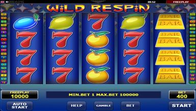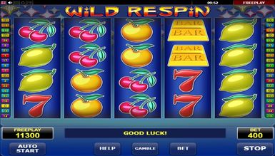 Игровые автоматы регистрация бесплатно 777 Wild Respin встречает пользователей 5 барабанами, расположенными на синем фоне. Игровая панель для ставок не выделяется из общей цветовой гаммы. Каждый символ красочно выполнен, во время получения игроком призов начинает подсвечиваться и анимироваться. Ещё большую красочность моменту приносит звуковое оформление, уведомляющее игрока о полученных выплатах. В верхней части слота красуется логотип с названием игры. Но главное отличие выделяющее его на фоне классического игрового автомата Sizzling Hot в наличии сразу сорока активны линий выплат. Центральная часть зарезервирована барабанами, а сбоку располагаются кнопки с цифрами от 1 до 40, каждая выкрашена в определённый цвет и начинает мигать, если на соответствующей линии была собрана выигрышная комбинация.