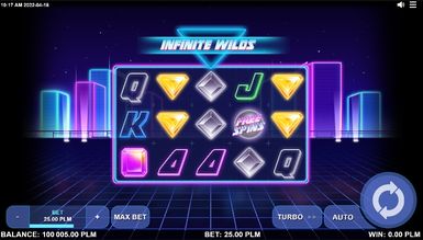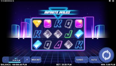 Игровой автомат Infinite Wilds — классический слот в неоновом стиле, выпущенный разработчиками студии 7mojos. Этот аппарат перенесет вас на виртуальный танцпол, где звучат зажигательные мелодии прошлых лет, и позволит принять участие в азартной диско сессии. За ярким дизайном эмулятора скрывается простой геймплей с интересными опциями. И если у новичка совсем нет опыта в гэмблинге, он сможет протестировать игровой автомат Infinite Wilds бесплатно, и только потом перейти к вращениям на реальные деньги.