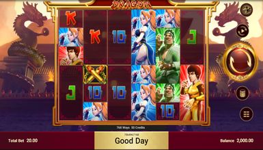 Все базовые картинки в игровом автомате Kungfu Dragon приносят выплаты, в зависимости от их количества и расположения на поле. Вайлд всегда готов превратиться в недостающий для выигрыша символ, а четыре Скаттера активируют бонусный раунд, в котором в бой вступает сам Дракон Ли с Фатальной Четверкой.
