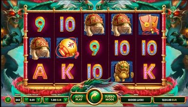Красочные картинки базовых символов автомата демонстрируют значимые для культуры Востока атрибуты - золотую статуэтку льва-стража, карпа кои, черепаху, колокольчик. Все они являются священными амулетами, приносящими какие-либо блага - материальные и духовные. Дополняют базовый набор изображения карточных номиналов. Для получения награды за комбинации с этими элементами требуется соблюдение определенных условий. Надо, чтобы три или более знаков одного типа сгруппировались в смежных барабанах автомата, начиная с крайнего слева. Тогда происходит автоматическое начисление выплаты - ставка перемножается с соответствующим коэффициентом, сумма незамедлительно поступает на баланс пользователя. Игра на удвоение не предусмотрена.