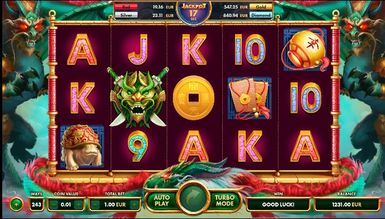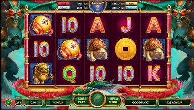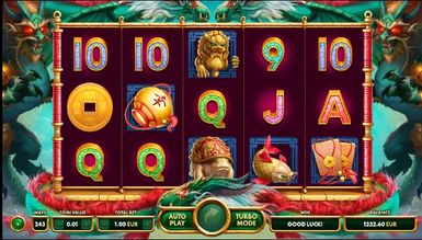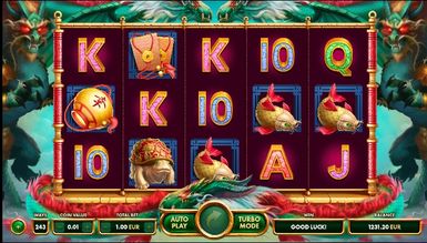 На экране автомата — поднебесье, в котором парят драконы со светящимися глазами. Между ними - игровое поле, состоящее из пяти барабанов, привычных линий для выплат нет. Правилами, опубликованными в таблице выплат автомата, предусмотрено 243 способа создания оплачиваемых последовательностей.