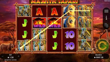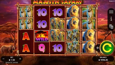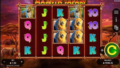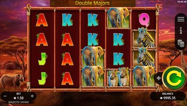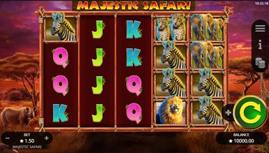Игровой автомат Majestic Safari — это выпуск Booming Games с 5 вертикальными катушками и 50 полосами для комбинаций. Аппарат имеет высококачественную графику. На главном экране пользователи могут найти анимированных животных в саванне на заднем плане и значки с высоким разрешением. Музыка, особенно барабаны, создаст атмосферу, которая заставит почувствовать себя в центре саванны. Это игра с фиксированными линиями выплат, оснащена бонусами: фри-спины и ре-спины.