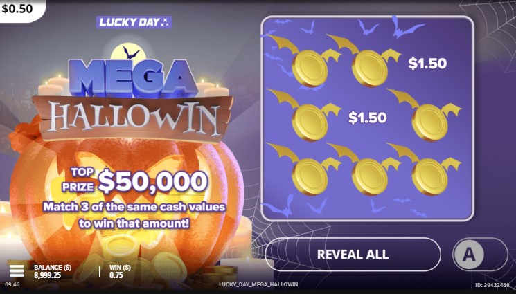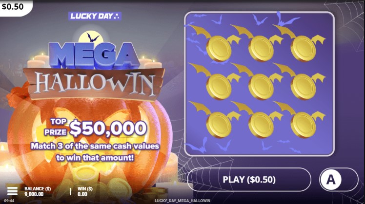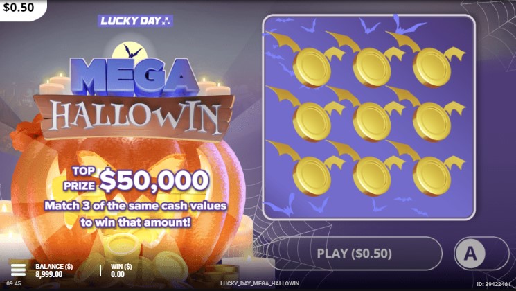 Демо слот Mega Hallowin оформлен в стилистике любимого осеннего праздника американцев — Дня всех Святых. Но механика аппарата нестандартна для азартного предложения. По сути, это скрэтч-карта. Слева на экране расположена огромная тыква с крупной надписью названия логотипа. Справа находится фиолетовый экран с расположенными на нем символами золотых монеток с крыльями, как в летучей мыши по схеме 3х3. Ход процесса в слот-машине следующий: