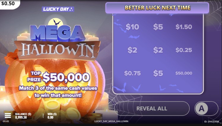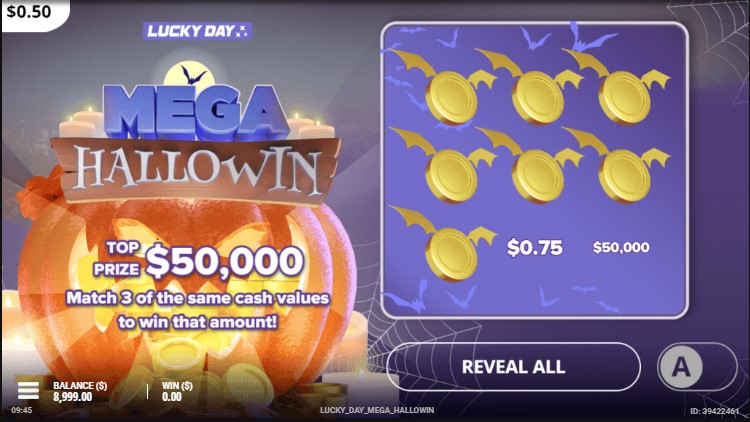 Запускать эмулятор доступно на ПК и мобильном. Игровой автомат Mega Hallowin включается, как платно, так и в демонстрационном режиме с 9000 кредитов на балансе