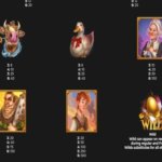 В качестве базовых игровых символов автомата выступают и классические карточные номиналы, и пиктограммы, соответствующие сюжету. Карты наделены невысокими коэффициентами, поэтому могут приносить небольшие призы. Более прибыльными в автомате Megaways Jack являются тематические пиктограммы: гусь, старушка, Боб, корова, тролль.