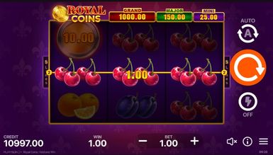 Если на одной из пяти фиксированных линий сложится сочетание из трех идентичных символов, вам будет начислена награда по установленным коэффициентам. Самые низкооплачиваемые картинки игрового автомата Royal Coins Hold and Win — вишни (х1). Наиболее прибыльные — семерки (х50). Производителем предложен розыгрыш трех видов джекпота. Вы можете получить «Grand» (х1000), «Major» (х150) и «Mini» (х25). Оцените особенности игрового автомата Королевские Монеты Держи И Выигрывай в демо режиме. Сформируйте стратегию, выходите на безубыточный уровень. Как только добьетесь желаемого, играйте на реальные деньги.