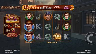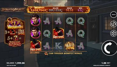 Виртуальный слот Sherlock and Moriarty WowPot имеет пять катушек с 20 активными полосками, которые расположены на фоне узкой улочки без освещения. Наверняка хулиган где-то затаился и хочет реализовать свой план. Но ему не удастся, так как вы его остановите. На каждую линию слот-машины принимается минимальная ставка в один кредит, а максимальная — 100 жетонов. Чтобы играть с мобильного в игровой автомат Sherlock and Moriarty WowPot, его нужно лишь скачать на телефон, так пользователь может развлекаться в любом месте.