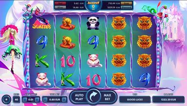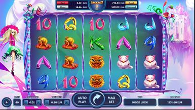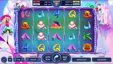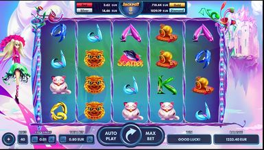 Фоном для игрового поля автомата является красивая картинка, на которой можно рассмотреть воздушный замок в бело-розовых тонах, плавающий в белоснежных облаках. А рядом с пятью барабанами автомата постоянно находится героиня сюжета - хорошенькая принцесса с зонтиком. Для ставок предназначается 40 линий - их можно активировать по желанию - 1, 10, 20, 30 или сразу все. Игрок должен помнить - чем больше линий действует, тем больше вероятность выигрыша.