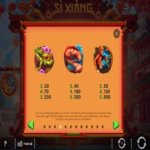 Si Xiang - игровой автомат, в основе сюжета которого лежит китайская мифология. В видеослоте используется тематический дизайн, а также набор соответствующих сюжету символов. В нем запускаются интересные бонусные опции, а на его поле выпадают знаки с расширенными возможностями.